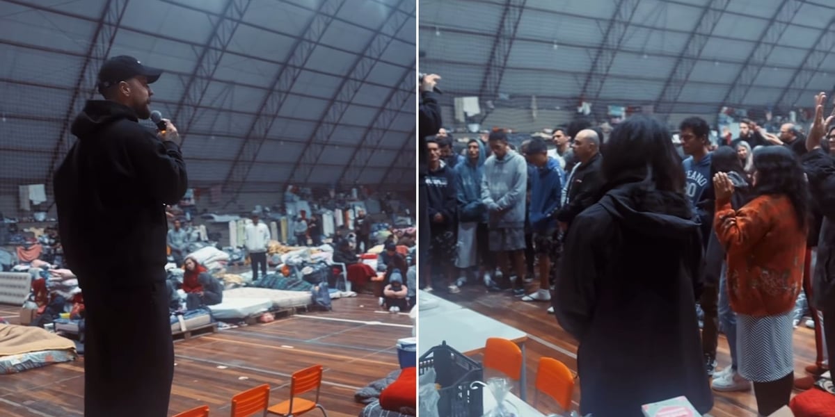 “Não é sobre apenas alimentar o corpo, é sobre Avivamento. Ontem vimos dezenas de pessoas se rendendo a Jesus em um abrigo aqui em Canoas no Rio Grande do Sul — Centro Olímpico”, compartilhou ele.