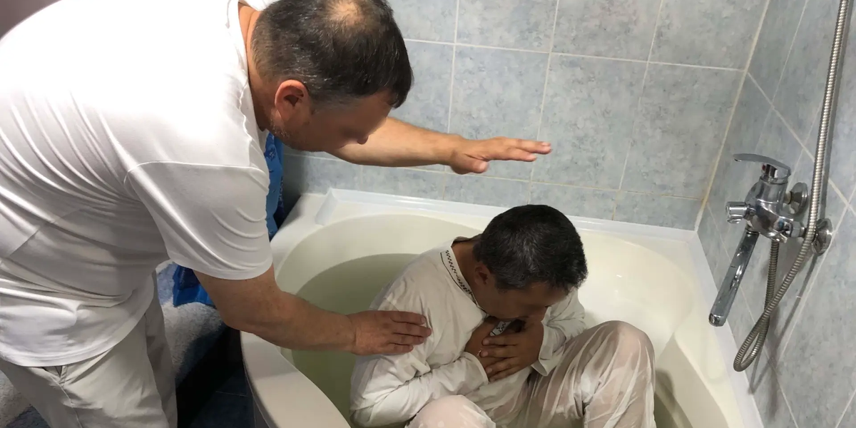O novo convertido foi batizado rapidamente no banheiro de uma casa, na presença de alguns alguns membros da congregação.