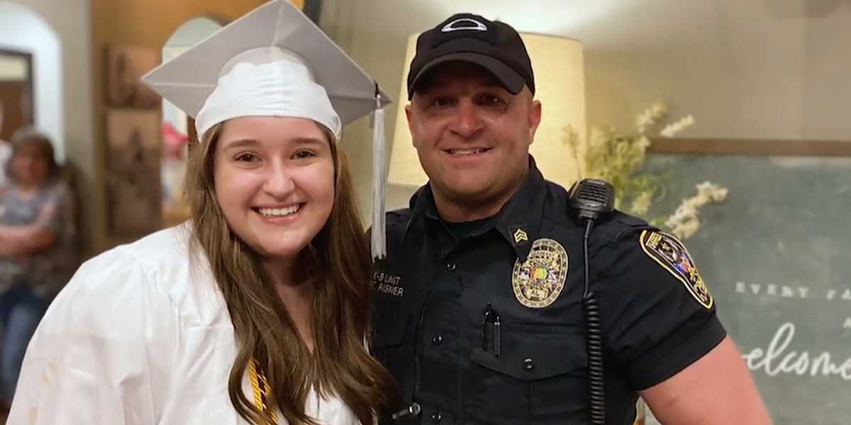 No local, o policial Nick Risner a abraçou e disse que tinha uma filha da idade dela e acreditava que Deus o havia enviado para ajudá-la.