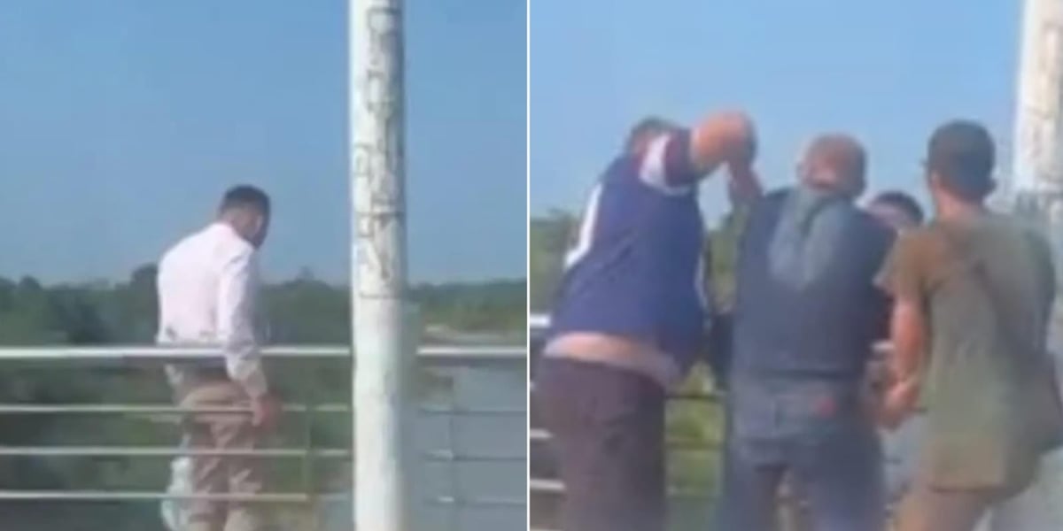 Logo depois, um homem se aproximou por trás da vítima e conseguiu segurá-lo. Com ajuda de outras duas pessoas, ele foi retirado da grade.