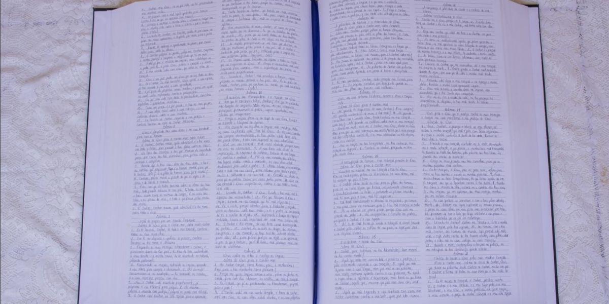 Cada integrante escolheu um livro da Bíblia para copiar em casa. Cleinha, por exemplo, ficou responsável pelo livro de Gênesis. Já obras mais extensas, como os Salmos, precisaram ser divididas em partes para facilitar o trabalho.