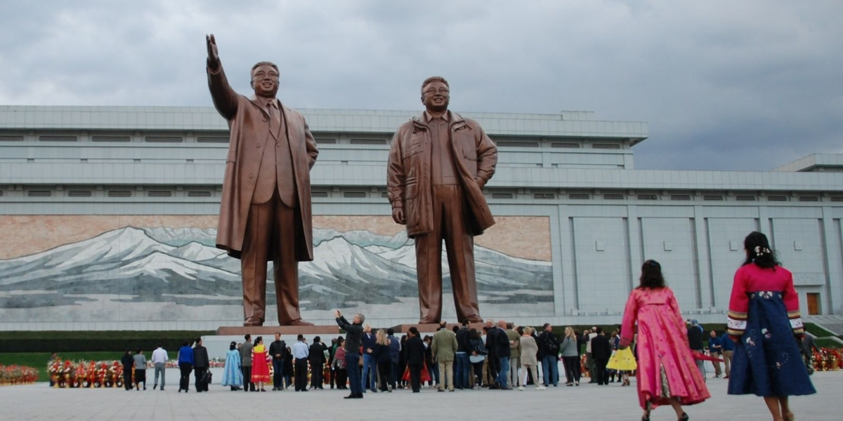 Desde cedo, crianças são ensinadas a se curvar diante dos retratos de Kim Il-sung e Kim Jong-il, exibidos obrigatoriamente em casas, escolas e locais de trabalho.