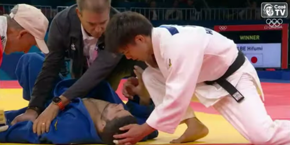 Pouco depois, Emomali enfrentou o atleta olímpico japonês Hifumi Abe, e a luta terminou de forma brutal.